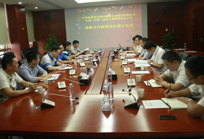 7月1日,中建三局二公司與中國能源建設集團湖南火電建設有限公司在二公司總部簽訂戰略合作框架協議。中國能源建設集團湖南火電建設有限公司副總經理李和平、二公司副總經理周必成、二公司基礎設施公司經營經理陳鵬飛等領導出席簽約儀式。
